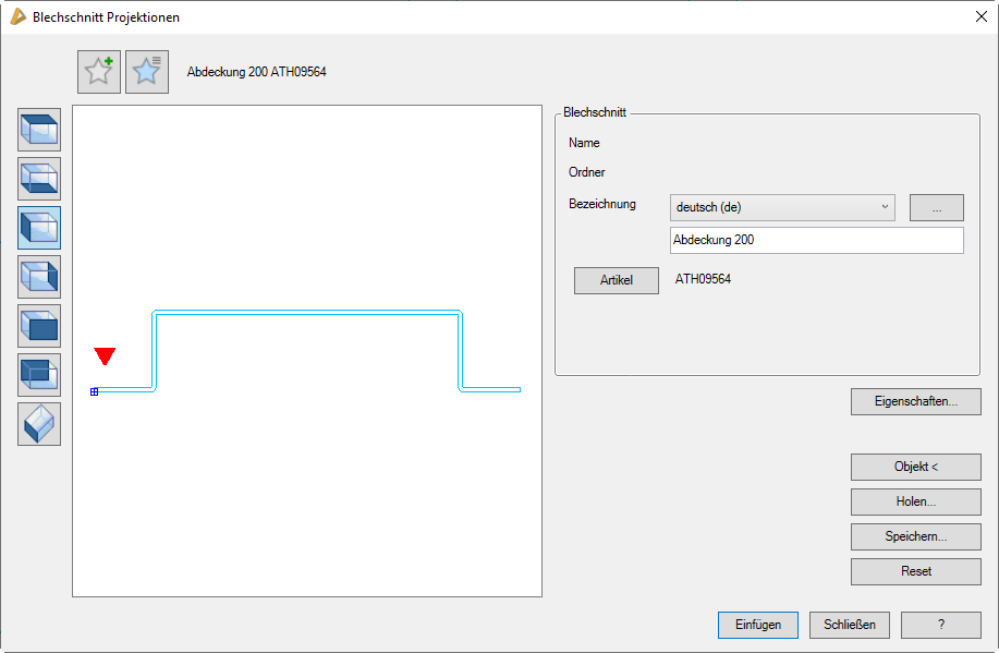 Werkzeugkasten: | ATH Blech > Blechquerschnitt Projektionen |