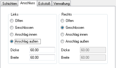 Stellt einen Anschlag auf der Außenseite der Wand mit den eingegebenen der eingegebenen Dicke und Breite dar.